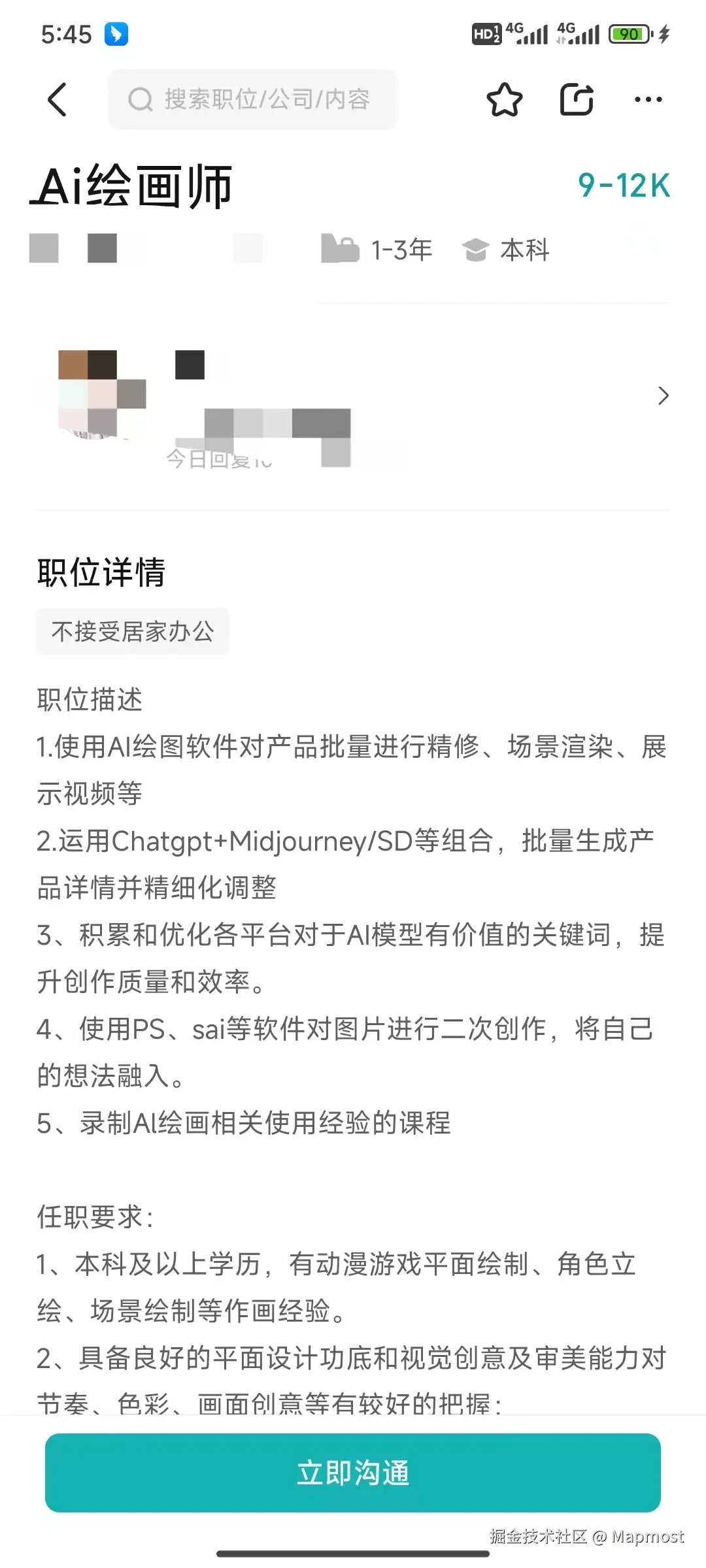但是这个岗位是要有一定绘画基础的才能胜任,需要二创的能力。看起来AI绘图师是古法绘图师的进阶版了。而且AI绘图师的产能比传统绘画极大提高。