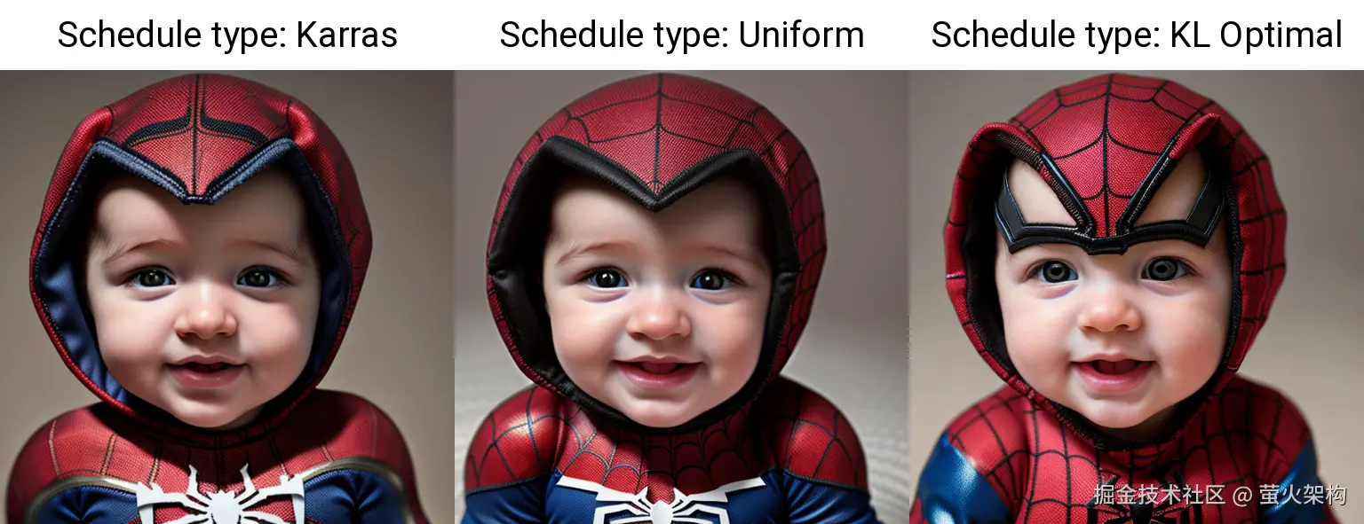 适合 SDXL 和 SD 1.5,使用交大步长时的推荐插值方法。与Karras、Exponential的对比,搭配祖先采样器时表现更为明显。