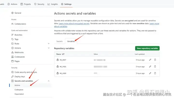 设置 Actions secrets 参数