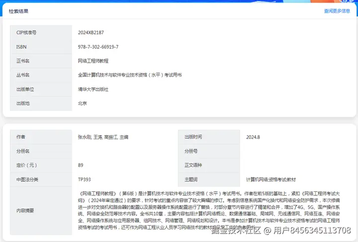 (网络工程师教程》(第6版)是计算机技术与软件专业技术资格(水平)考试用书。作者在前5版的基础上,紧扣(网络工程师考试大,纲》(2024年审定通过)的要求,针对考试的重点内容做了较大篇幅的修订。考虑到信息系统国产化换代和网络安全防护需求,本次修编,进一步对交换机和路由器的配置以及服务器操作系统配置进行了替换,对部分章节内容进行了精简和合并,增加了4G、5G、国产操作系,统、网络安全防范等技术内容。全书共10章,主要内容包括计算机网络概论、数据通信基础、局域网、无线通信网、网络互连、网络安,全、网络操作系统与应用服务器、组网技术、网络管理、网络规划和设计。本书是参加计算机技术与软件专业技术资格考试的网络工程师,资格考试的考试用书,还可作为网络工程从业人员学习网络技术的教材或日常工作的参考用书。