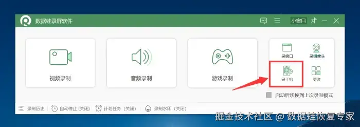 步骤1:在电脑上下载安装最新版的数 据 蛙录屏软件,该软件拥有专业的录手机模式。