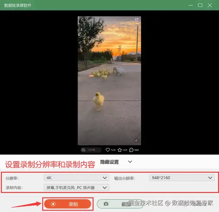 使用数 据 蛙录屏软件对荣耀手机进行录屏的操作方法如下: