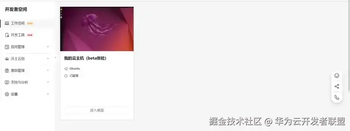 申请之后,会提示加入开发者空间,根据提示选择配置就行了。