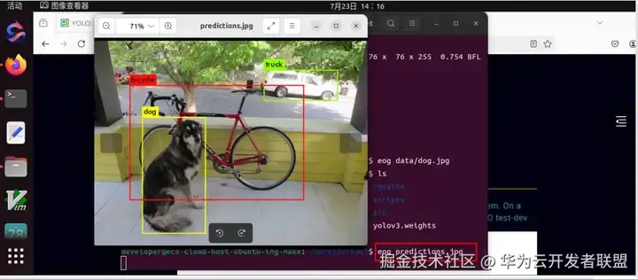 ./darknet detect cfg/yolov3.cfg yolov3.weights data/dog.jpg