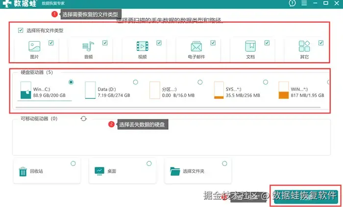 如果已经使出前面的招数依旧找不回丢失的数据,那就只能请请外援了!如何恢复数据?问问神奇的数据 蛙恢复专家吧!数据 蛙恢复专家是一款专业的电脑数据恢复软件,它的页面设计简洁清晰,电脑小白也无需忧虑,轻松几步就能顺利操作,找回电脑丢失的数据。
