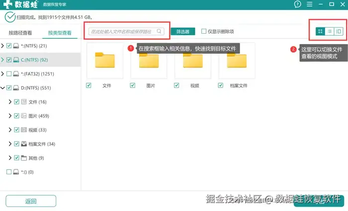 第2步: 扫描文件出现后,您可以选择直接通过搜索框搜索目标文件名或保存路径,精准找到目标文件。