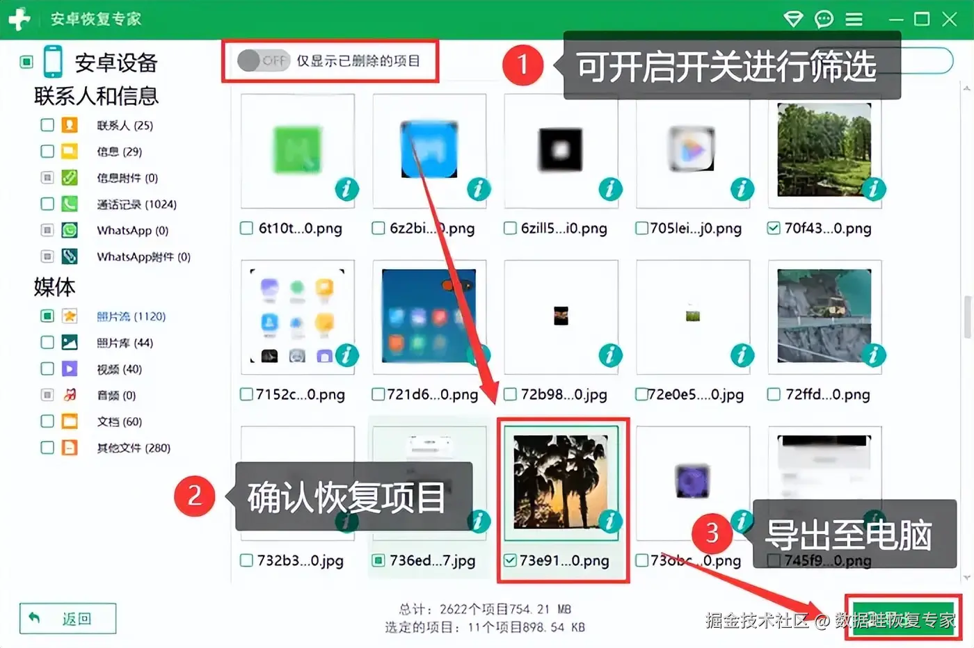 如果以上两种方法都无法找回你误删的照片,那么小米手机删除的照片怎么恢复?可以考虑这款【数据 蛙安卓恢复专家】,其优势如下: