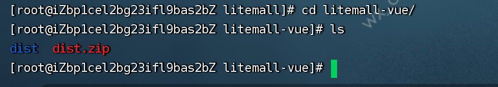 我们将dist文件放在自己用户下面的,这里我是root用户,我就创建litemall目录,在litemall目录下面,创建放至前端的文件夹,litemall-vue。