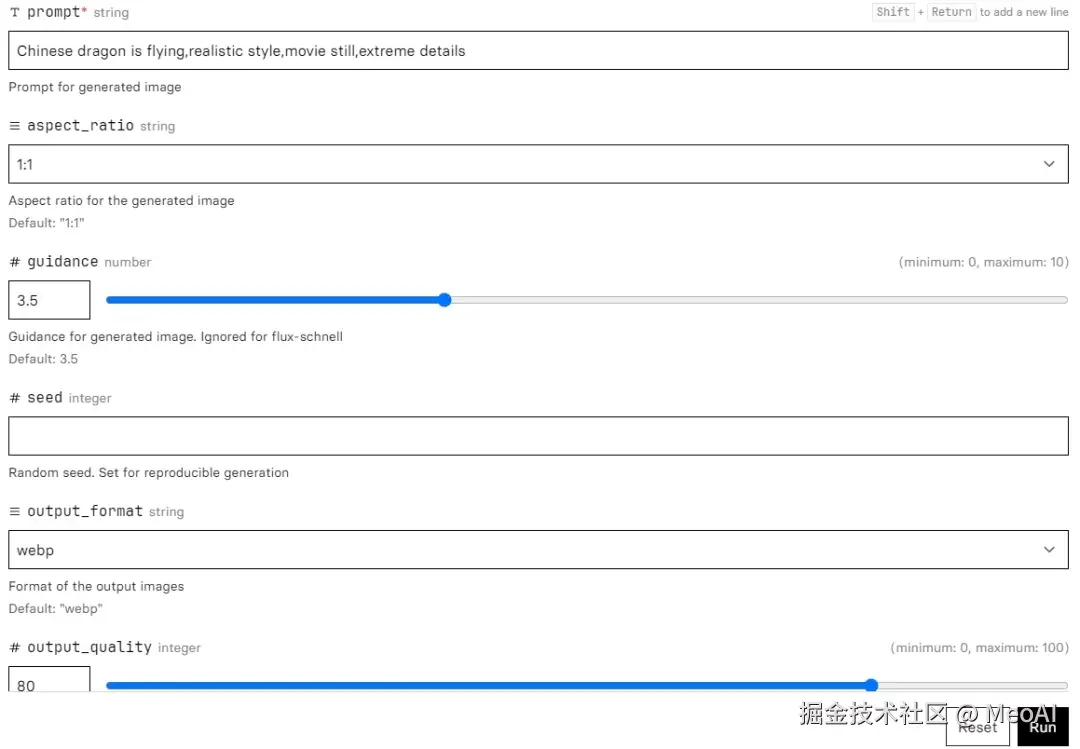 输入参数介绍( 以flux-dev为例,Pro版本收费 ) :