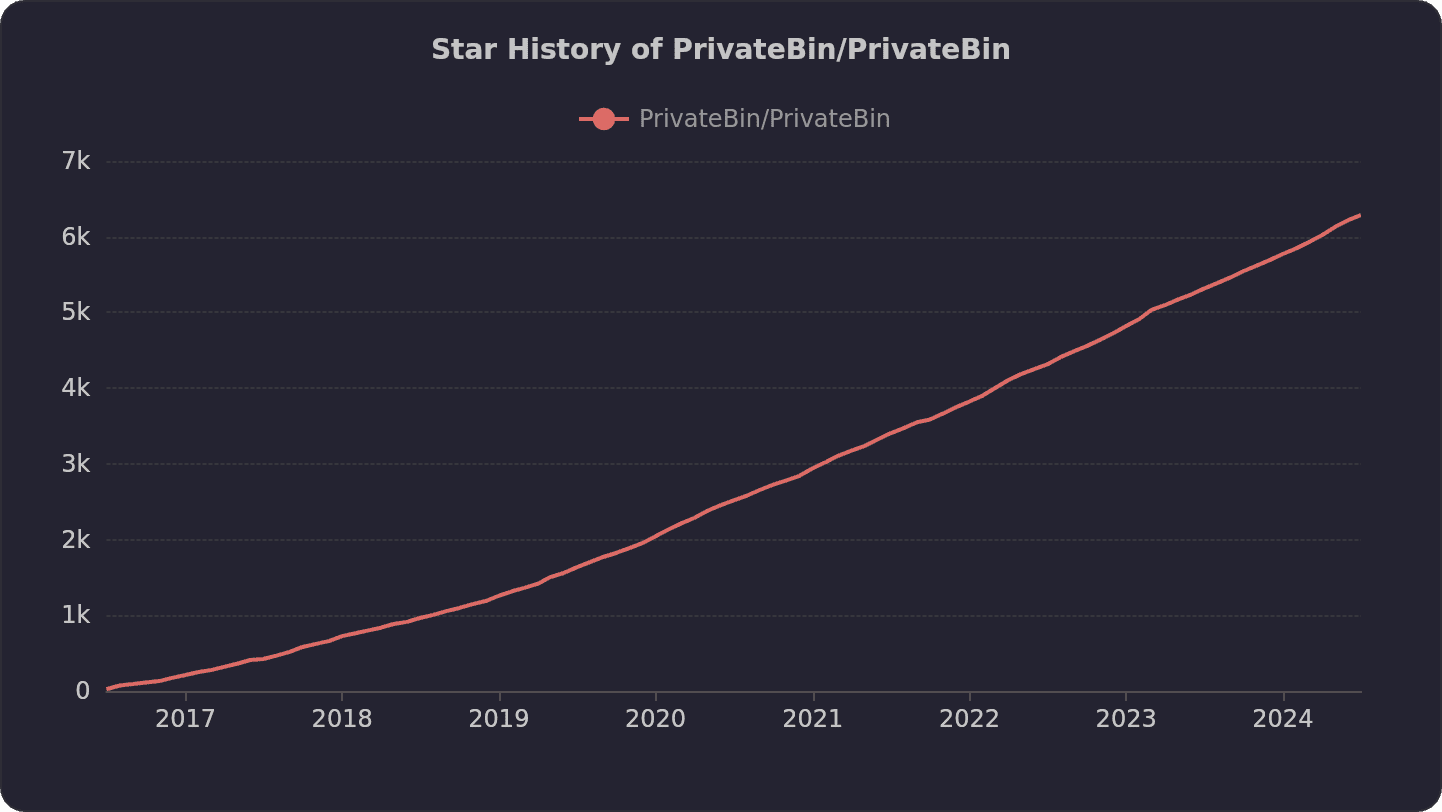自 2016 年首次发布以来,PrivateBin 凭借其出色的隐私保护特性和简洁的用户界面,迅速在开源社区中获得认可。目前 PrivateBin 在 GitHub 上已经获得了超过 6000 颗星。
