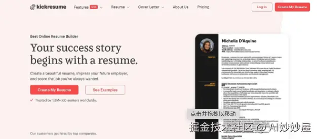 Kickresume 是用于创建简历和求职信的工具。 它为用户提供了 50 多个模板,其中包括在几分钟内创建专业简历或求职信的分步说明。