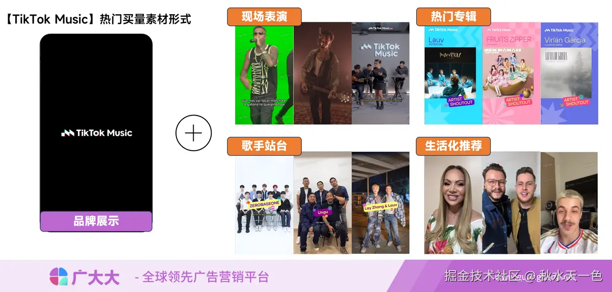 - 【TikTok Music】的投放则算是比较少的了,猜测和【CapCut】的投放策略较为类似,都是依附于【TikTok】来进行传播,或许也会如【CapCut】一样先蛰伏几年后,再慢慢开始变现。