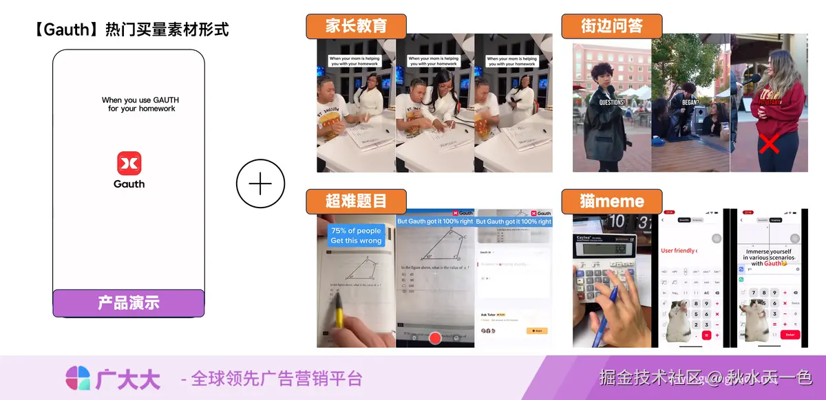 - 超难题目: 故意渲染题目的难度,并用稍显挑衅的文案挑起用户胜负欲,再用【Gauth】解决,完美体现技术力;