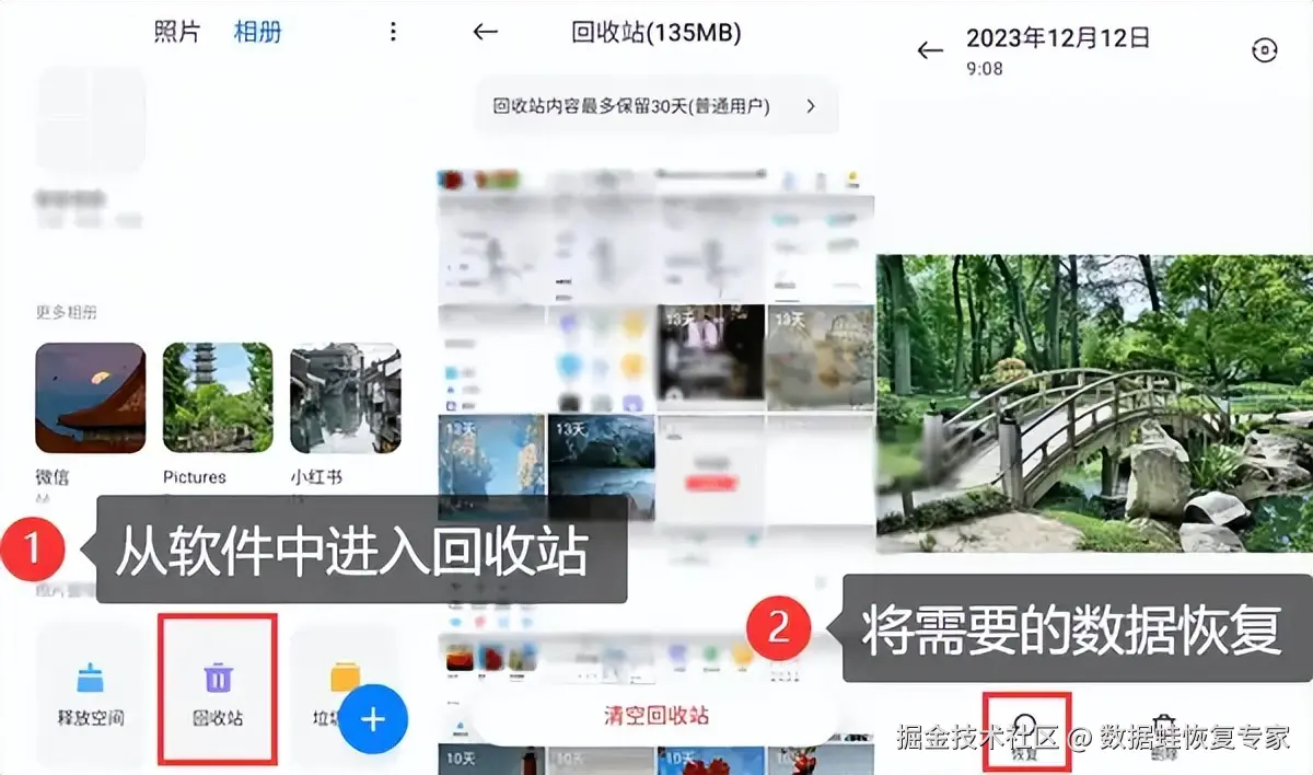 注意:这种方法只适用于近期删除的文件,并且文件恢复的成功率也会受到手机系统和存储空间等因素的影响。