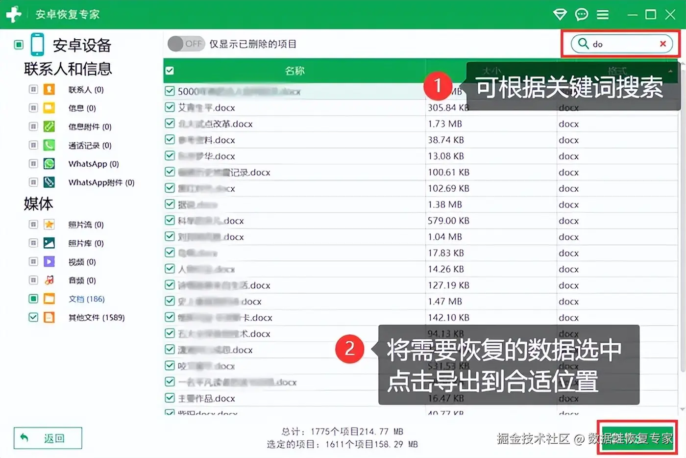 第二个方法就是使用【数据 蛙安卓恢复专家】,它能够深度扫描手机存储空间,找到被删除的文件并尝试恢复,手机误删文件找回有一定概率。无论你是使用的是华为、小米、OPPO还是vivo等,都可以轻松应对数据恢复难题。其使用方法也十分简单,步骤如下: