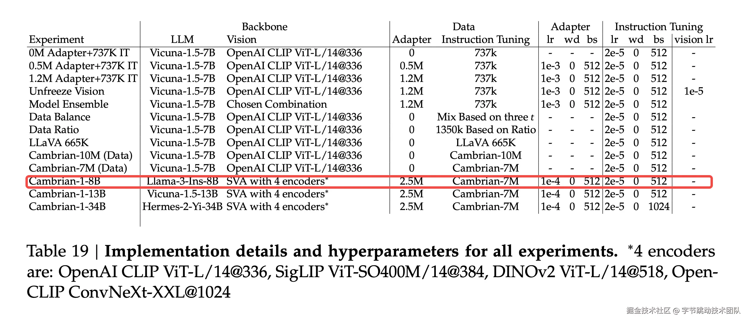 - stage2数据:Cambrain-7M数据做SFT;2e-5学习率,bs512;