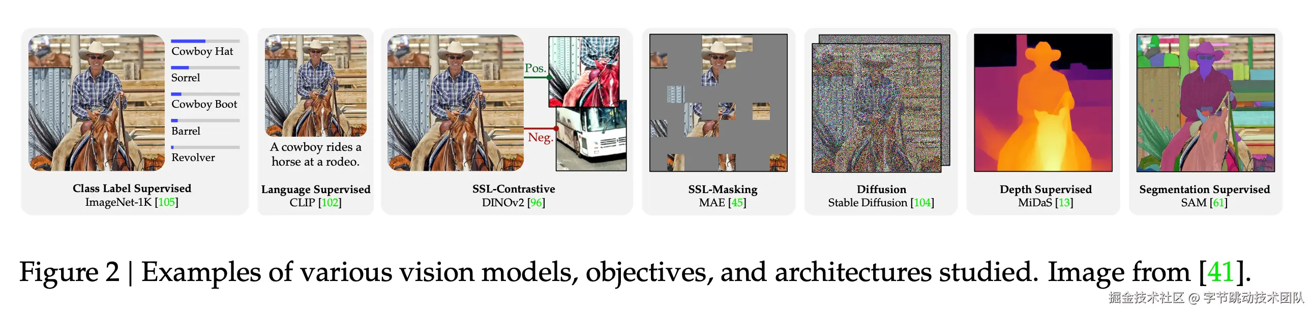 由图6可以看出,不同pre-train、不同architecture的视觉backbone擅长的任务不同,可以将他们进行结合获取更好的效果。