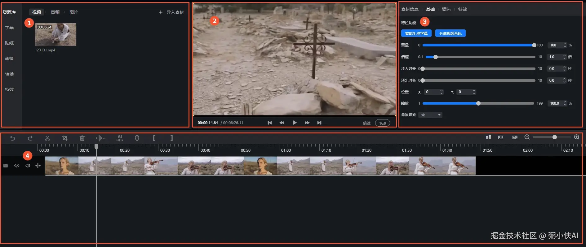 首先先看看最基本的视频剪辑功能,具体如图所示: