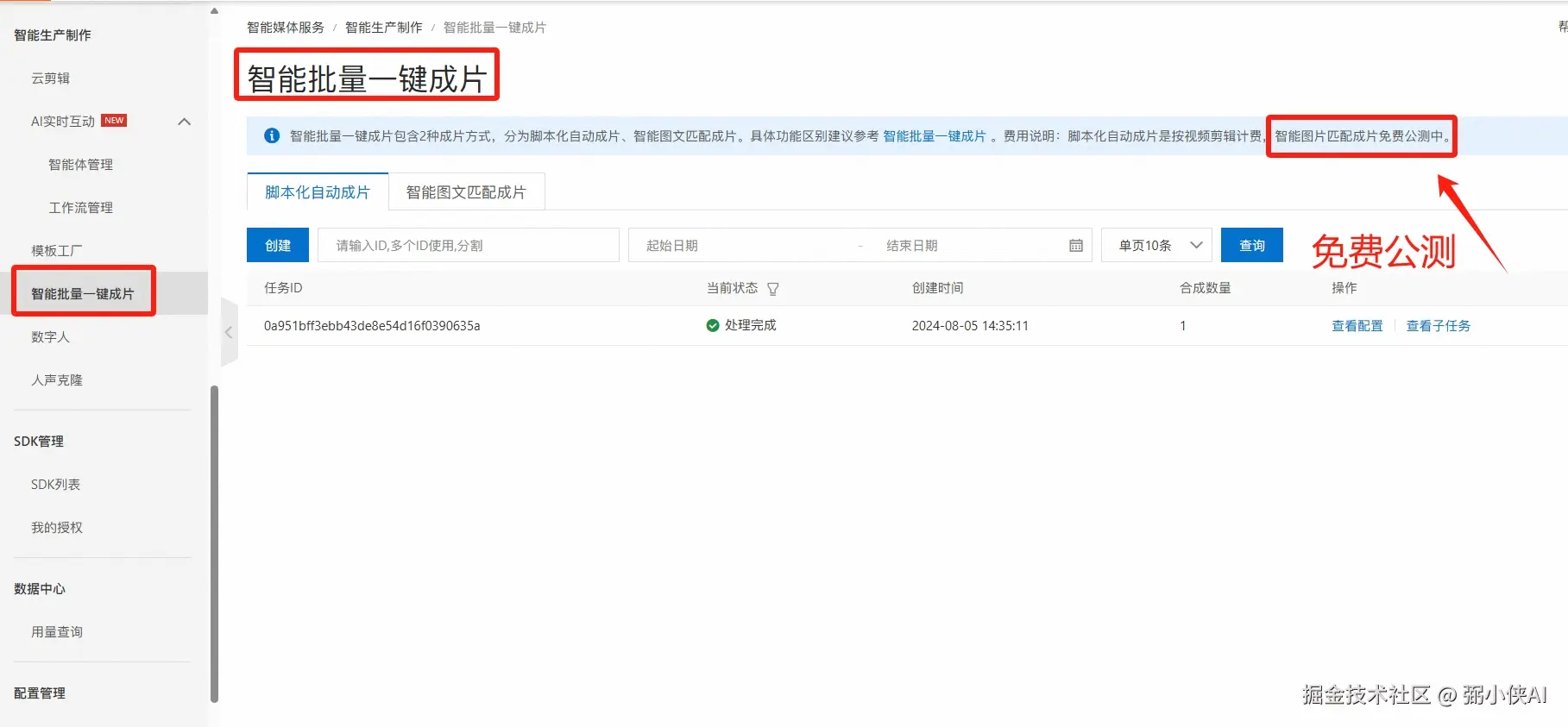 - 在左侧导航栏选择智能生产制作 > 智能批量一键成片。