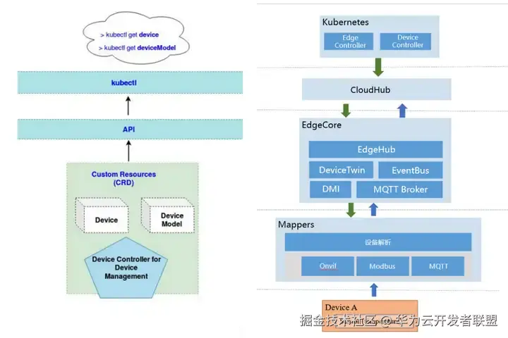 KubeEdge使用云原生的方式管理边缘设备,实现了基于物模型的设备管理API,表现为DeviceModel与DeviceInstance这两个Kubernetes CRD: