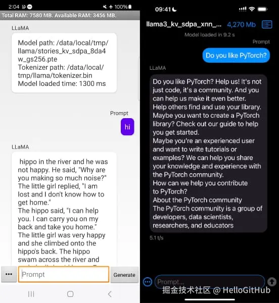 该项目是由 PyTorch 团队开源的 Python 库,旨在简化大型语言模型 (LLMs) 的运行,轻松在桌面、服务器、iOS 和 Android 等平台上运行 LLMs 聊天应用。用户可以直接通过命令行与大模型交互,或启动 WebUI 在浏览器中使用。此外,基于 ExecuTorch 生成的 PTE 文件,它还能生成适用于移动设备的 LLMs 聊天应用,支持 Llama 3.1、Llama 3 和 Mistral 等大模型。