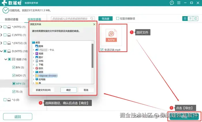 第4步: 选择结束后,单击【导出】,在弹窗根据指示和温馨提示选择好新存储路径即可。