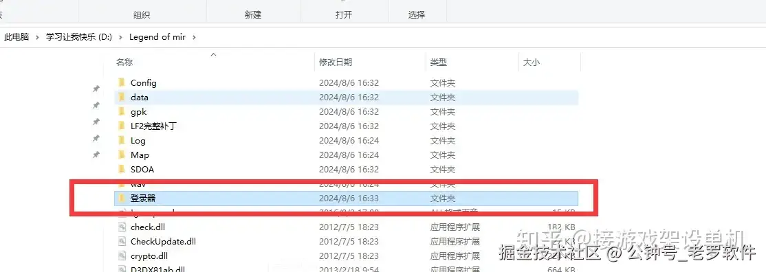 然后将Mirserver 文件夹复制到D盘的根目录。千万要注意这个路径必须是D:\Mirserver
