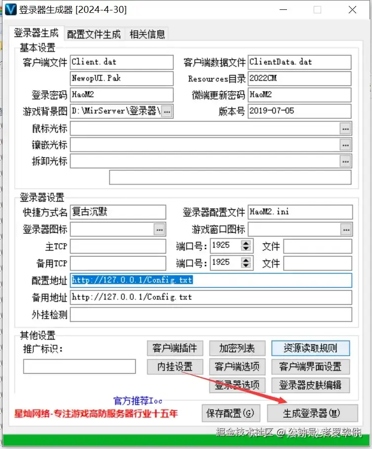 打开复制后登陆器的MakeGameLogin.exe,点击生成登陆器,生成到游戏客户端目录。