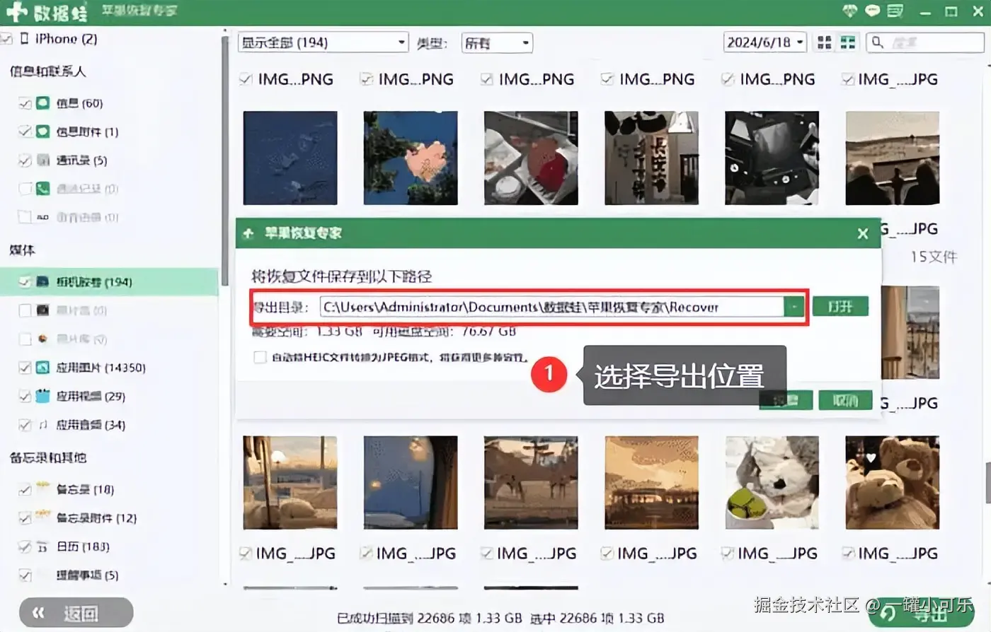 如果你在【最近删除】相册中没有找到所需的照片,那么你可能需要借助专业的数据恢复工具来尝试解决相册图片如何恢复的问题。数据 蛙 苹果恢复专家具备直观的用户界面、高效的扫描算法以及广泛兼容大部分iOS版本的特点,能够在很大程度上帮助用户安全地恢复丢失在iPhone上的照片、视频、消息等多种数据类型。下面是恢复照片的具体操作步骤。