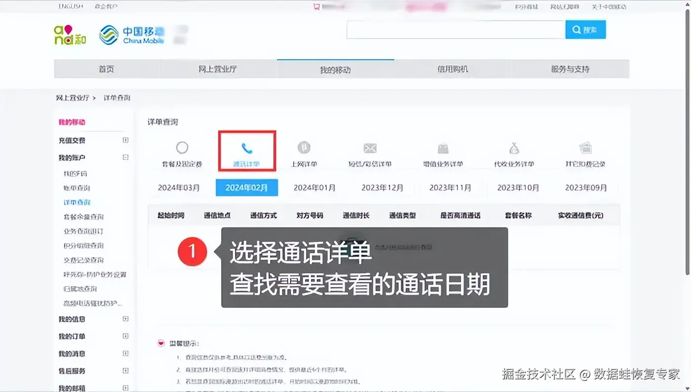 策略一:通过手机运营商恢复通话详单