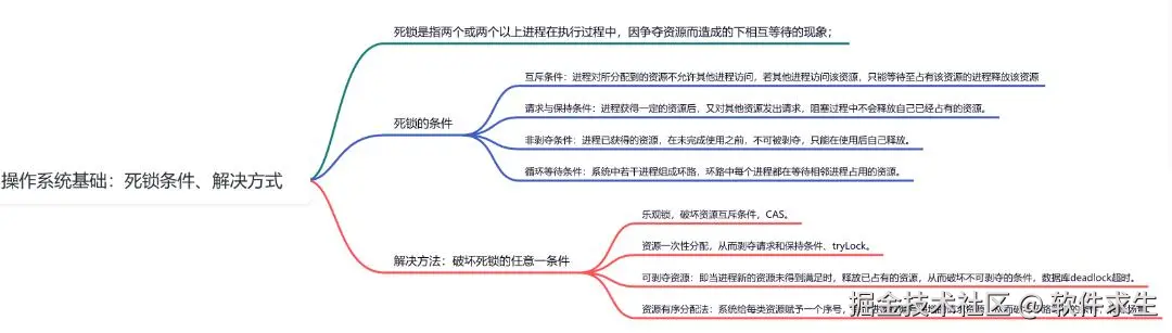 - 互斥条件: 进程对所分配到的资源不允许其他进程访问。如果一个进程请求资源而该资源已经被其他进程占用,请求进程只能等待,直到占用资源的进程释放资源。