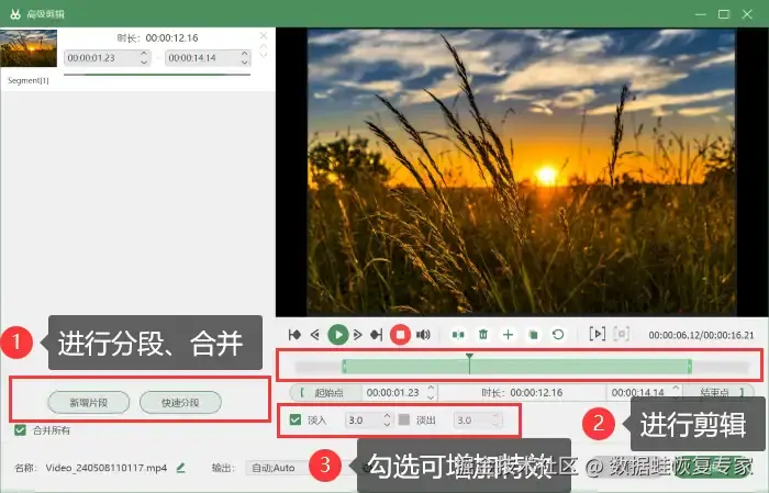 步骤4:录制完成后,可直接通过预览视频进行保存,也可进入 【高级剪辑】 页面对视频进行分段、剪辑、增加特效等操作,点击 【剪辑】 按钮即可保存视频并结束本次录制。