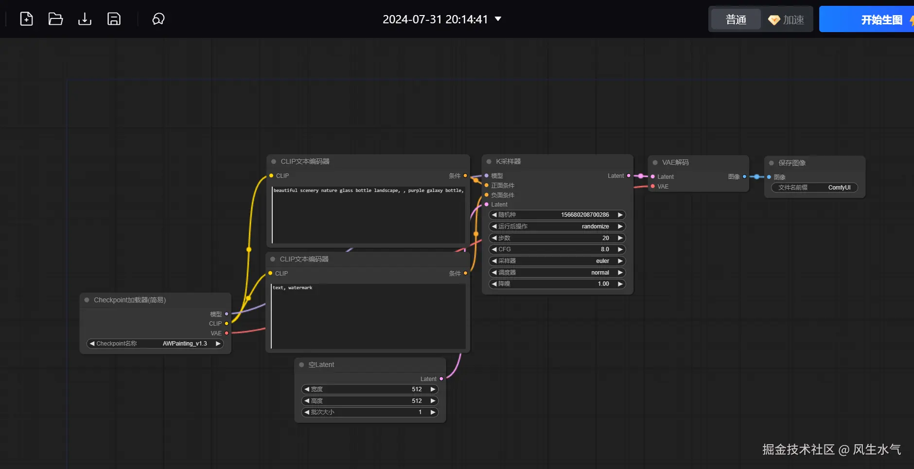 在尝试的初步阶段,我们可以优先处理提示词,在根据提示词生成之后,可以再调整其他参数。通过生成效果来不断优化这些参数。