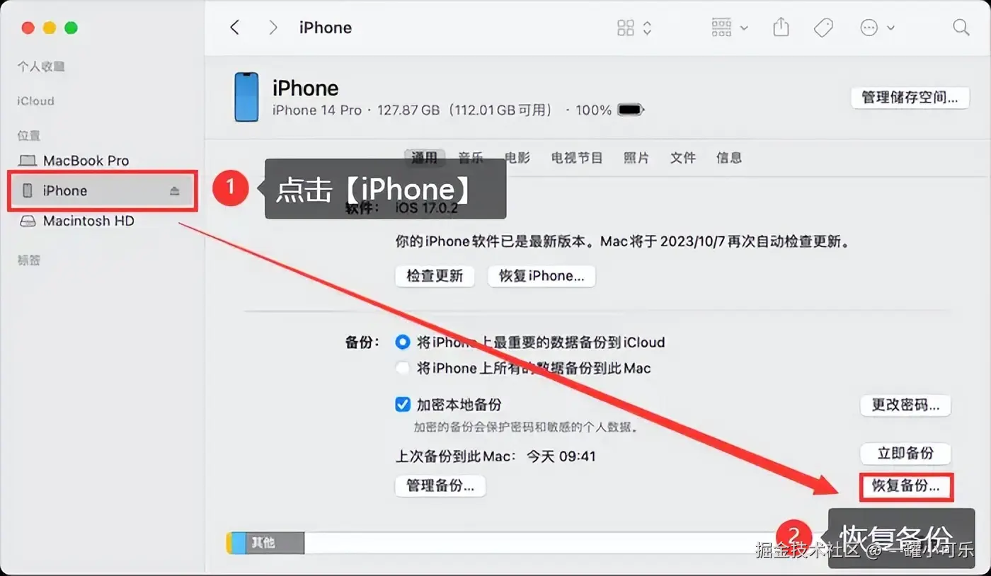 第2步:在右侧显示的窗口中点击 【恢复备份】 即可。