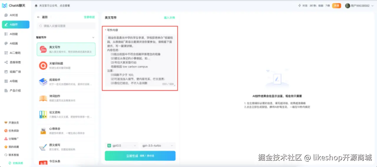 那么今天咱们就来用ChatMoneyAI的AI聊天绘画系统写写今年高考的英语作文吧。