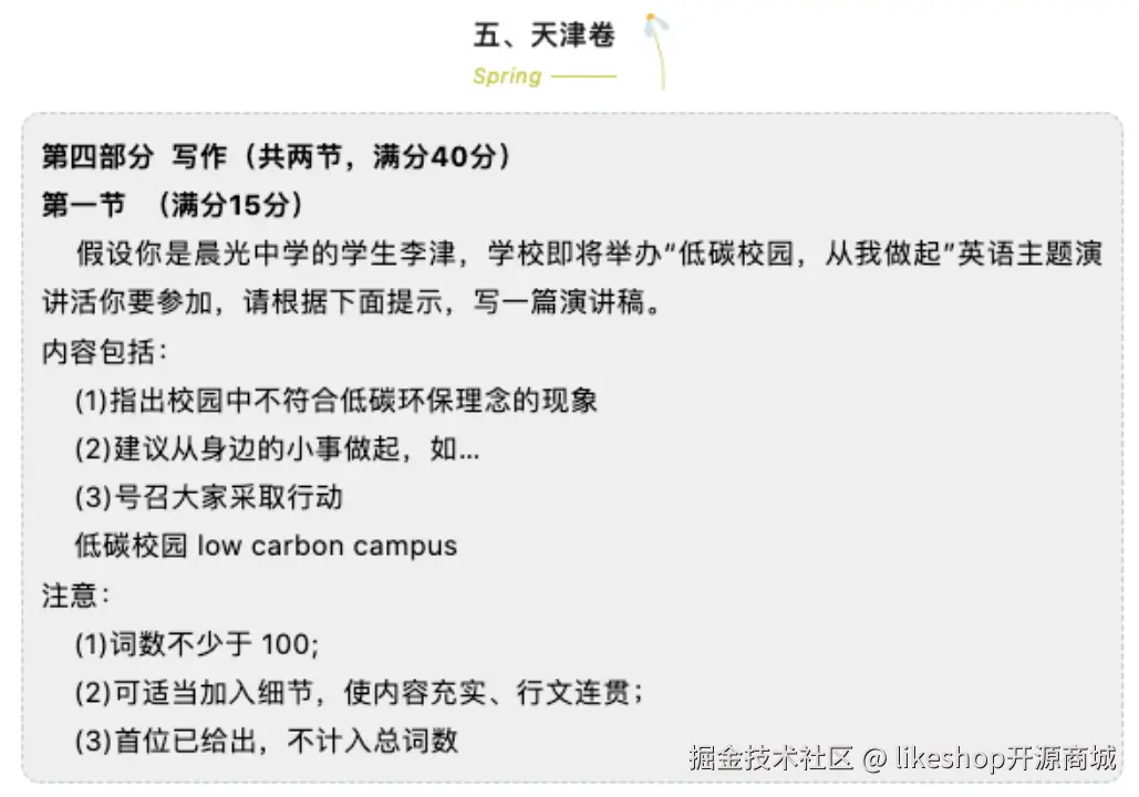 我们就拿2024年全国高考天津卷英语作文题为例