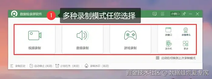 软件版本:数据蛙录屏软件1.1.12