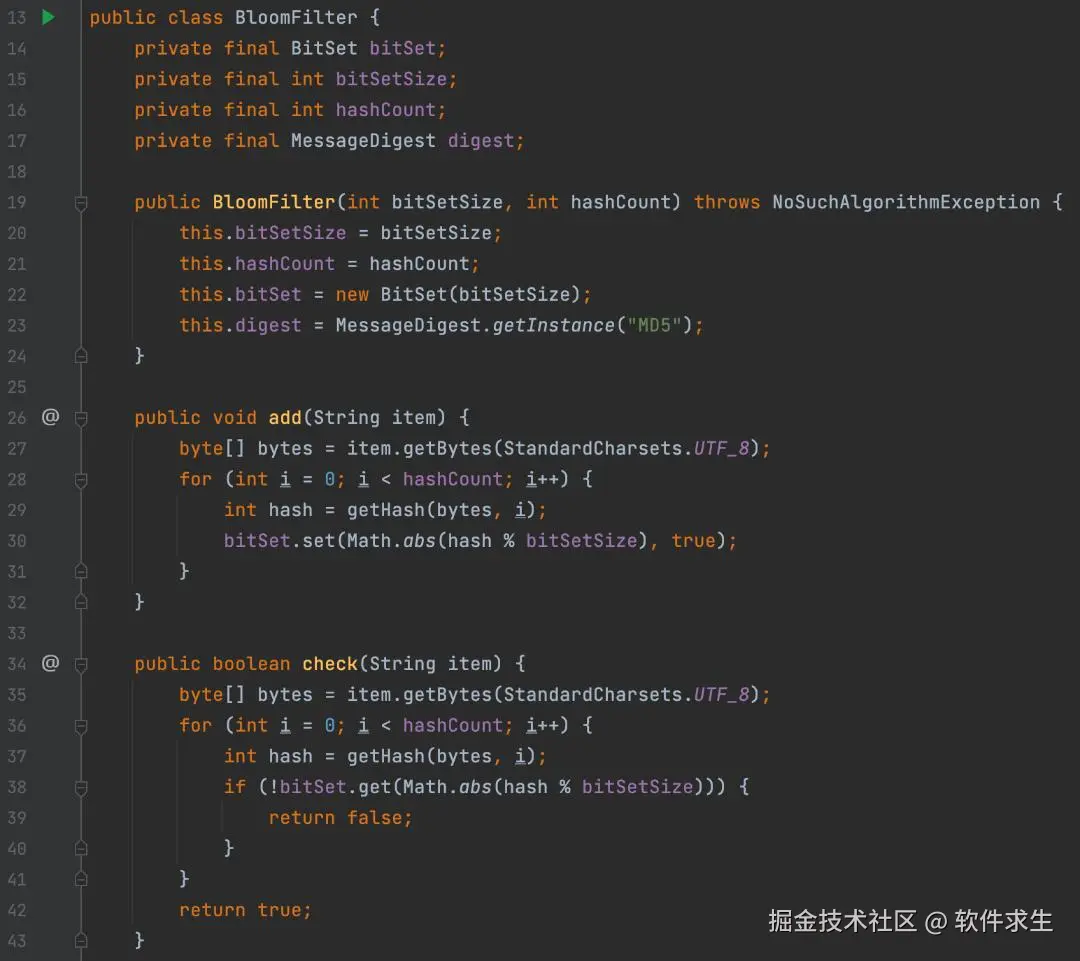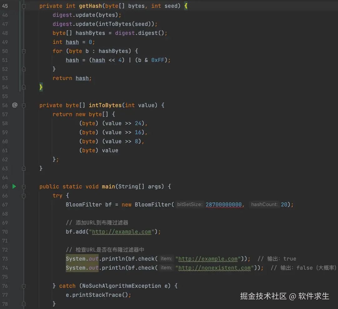 下面是布隆过滤器的Java实现,包括初始化、添加元素和查询元素的代码。