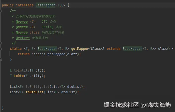 MapStruct前提引入:重点官网 mapstruct 官网:mapstruct.org/MapStruct 是用来干什么的?MapStruct是一个代码生成器,它大大简化了将Java Bean对象映射到其他Java Bean对象的过程。通过简单的注解配置,MapStruct能够自动创建映射接口的实现类,处理属性之间的映射关系,包括基本类型、集合、嵌套对象等,无需手动编写映射逻辑代码。