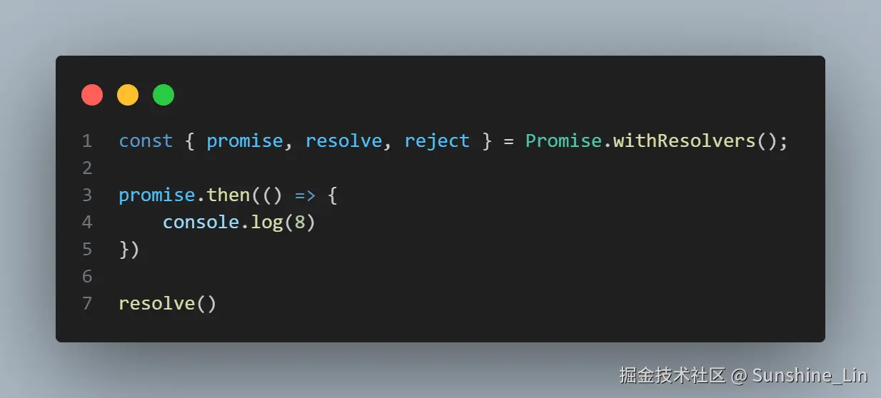 它的作用是把 Promise实例、resolve、reject 解构出来供我们使用,还是刚刚的例子,使用Promise.withResolvers