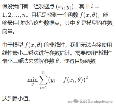 在科学研究和工程应用中,我们经常需要对实验数据进行拟合,以获得数据背后的规律和模型。对于线性模型,我们可以使用线性最小二乘法进行求解。然而,现实世界中很多问题往往表现出非线性特征,因此需要使用非线性最小二乘法来进行参数估计。