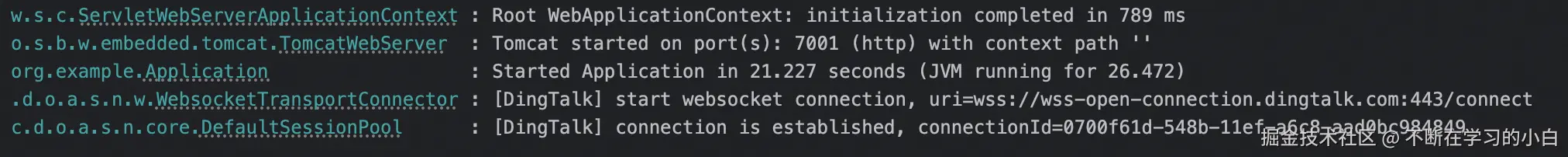 start websocket connection, uri=wss://wss-open-connection.dingtalk.com:443/connect