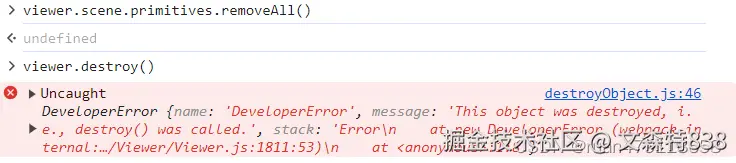 注意下有个坑,那个primitives 不要removeAll,本来项目中也没有primitives,而且清除之后,在destory viewer会报错,所以就暂时先注释掉,后续有大神了解的话,可以解答下这个primitives为啥会出现这个问题