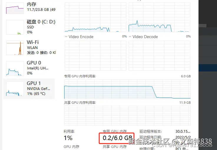 但是这样一直清除不干净,虽然比不清除之前好,显存还是会每次小幅度上升,因为viewer嵌套关系过多,这个可能只释放了viewer对象,但里面的很多图形信息,还是存在显存中的,今天找了套相对来说最干净的方法,直接上效果对比,注意看显卡的专用GPU内存占用情况,我的电脑显卡1660TI MAXQ,还没加载模型,重复来回点击十几次也会崩溃了