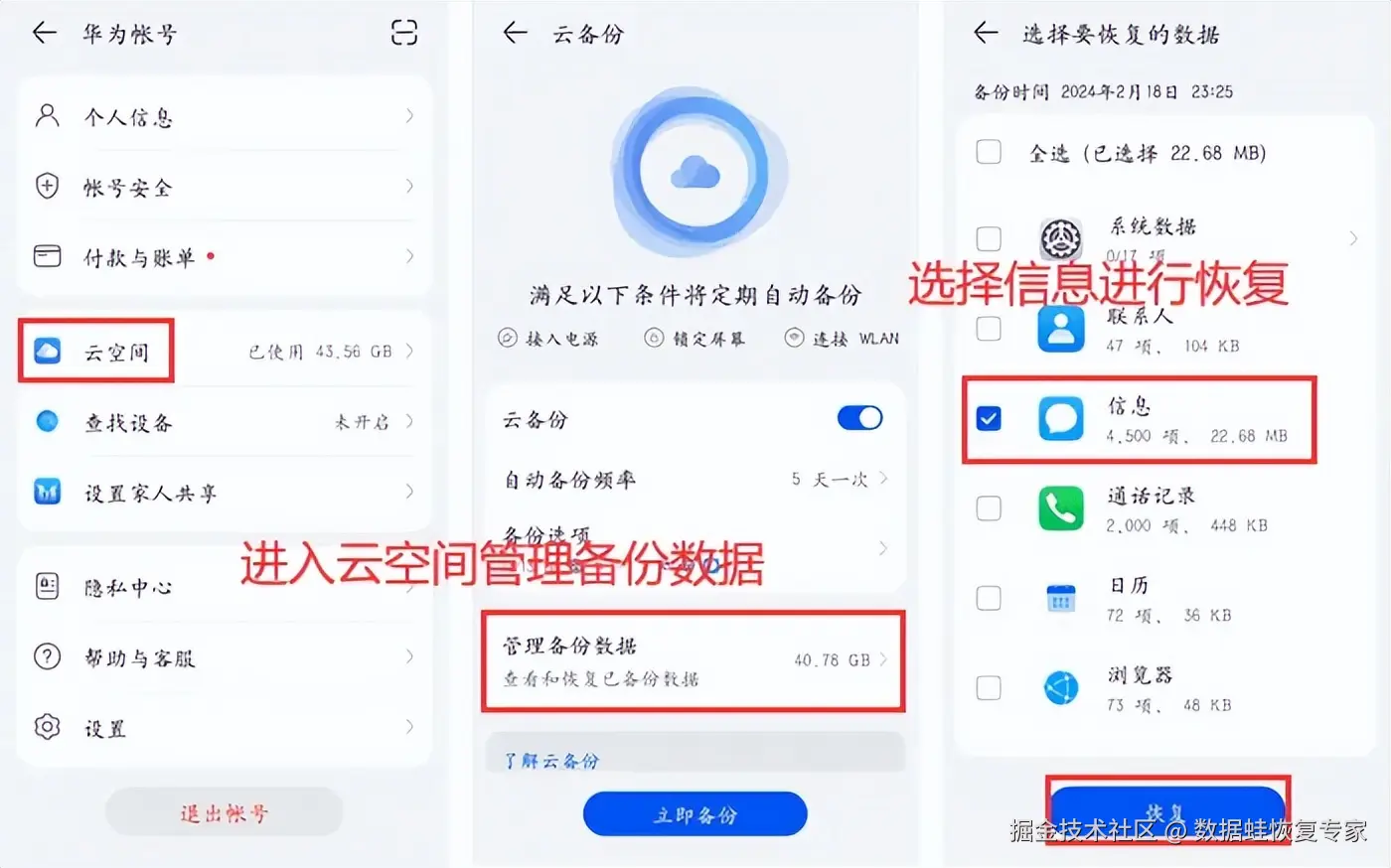 第一步:短信数据误删恢复的第一个步骤就是立即打开手机云空间,寻找备份数据。