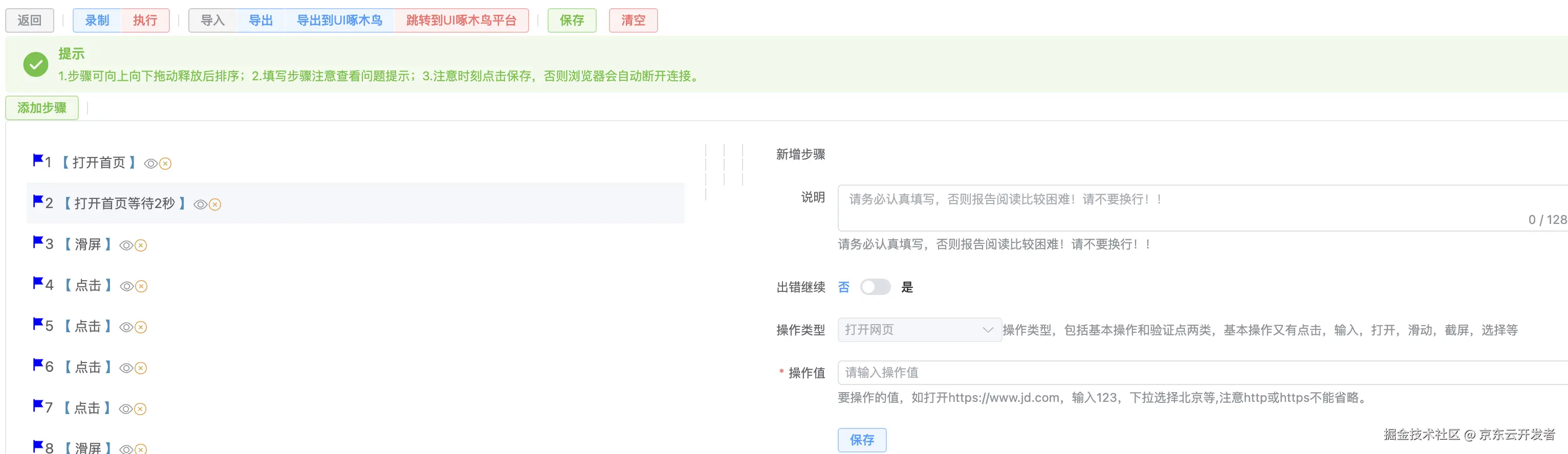2.新增点击录制后保留当前录制步骤功能;