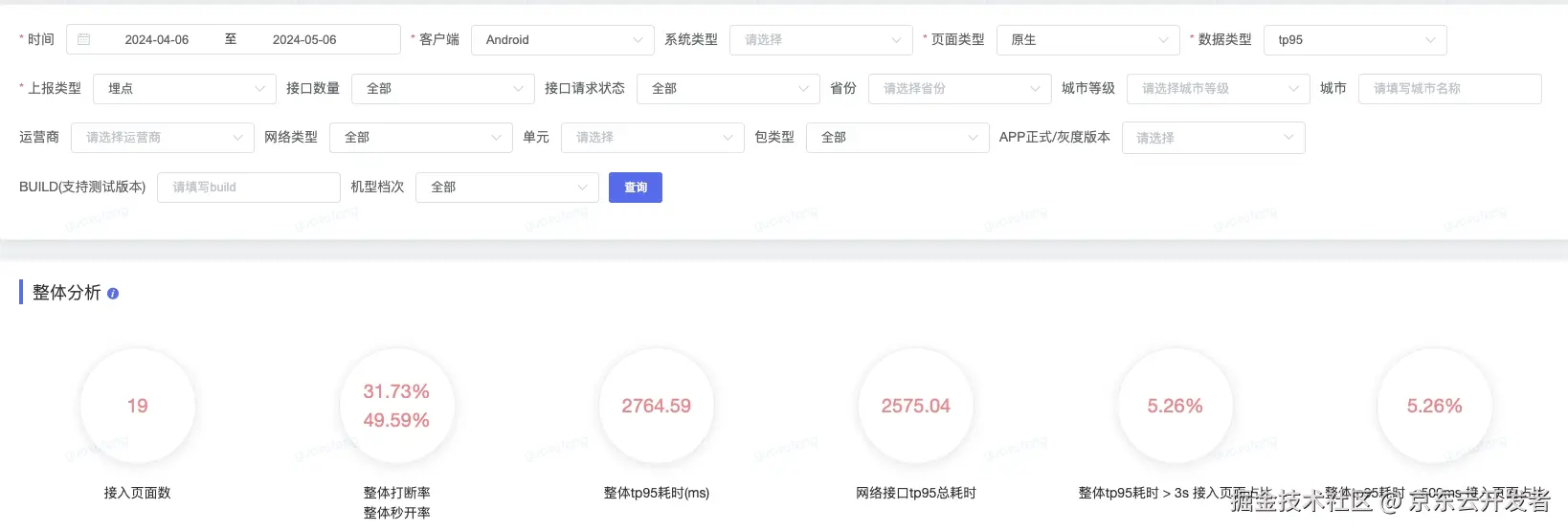 •白屏时间:这一指标能够向开发者展示哪些页面出现了白屏现象。在利用此指标之前,我们需要为每个应用单独配置白屏时间的监控参数,以确保准确地捕捉到首次内容呈现的时刻。这有助于我们识别并优化那些影响用户首次加载体验的关键页面。