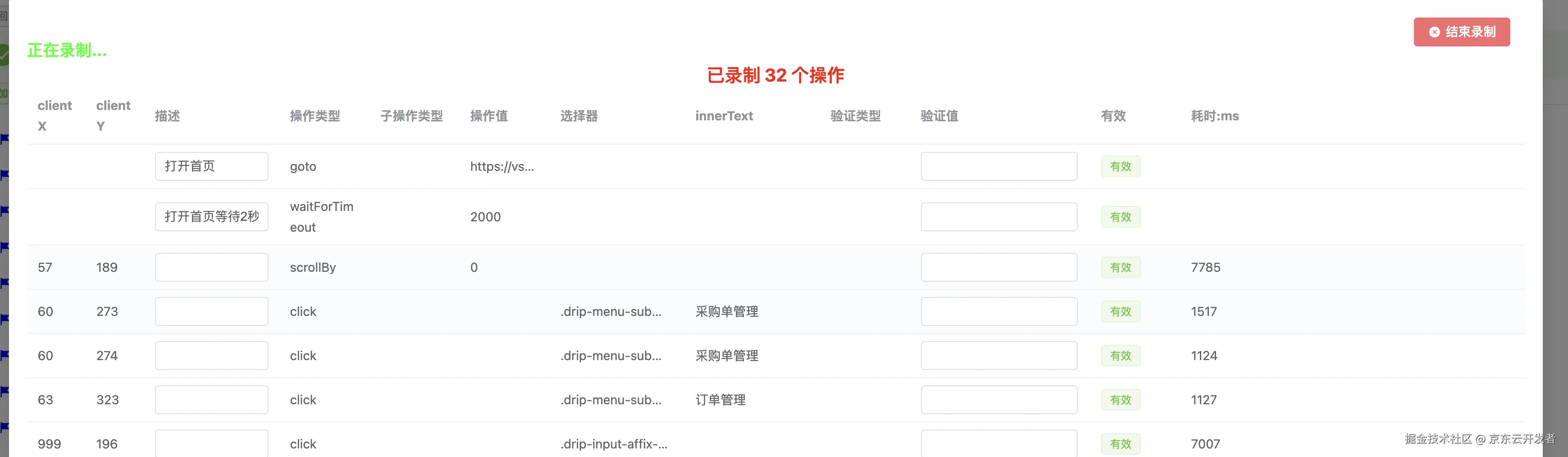 1.打开录制和停止录制按钮,分别开启监听和关闭拦截页面事件功能;