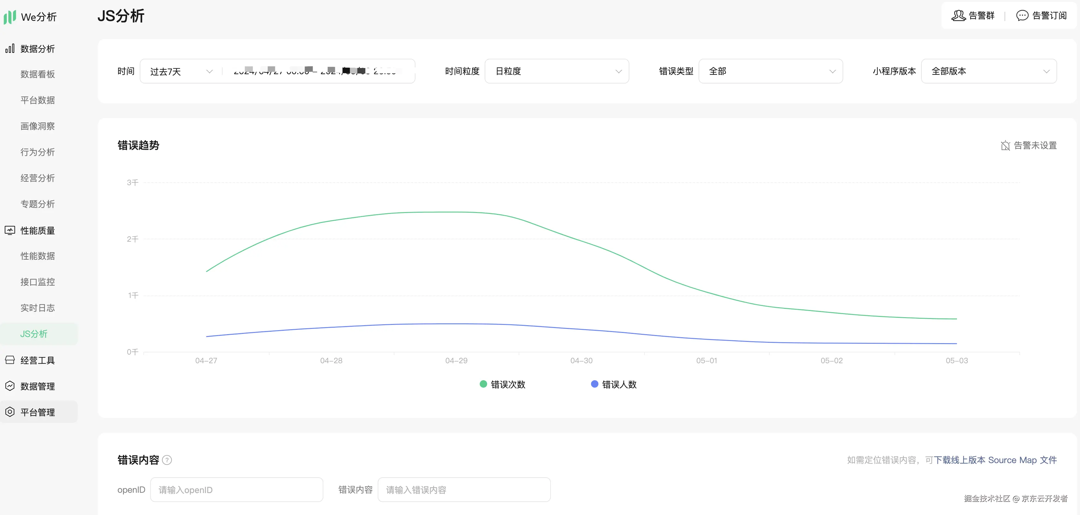 •通过配置 JavaScript 错误和资源错误的告警机制,我们在项目迭代过程中及时解决了多个 JavaScript 问题,有效降低了错误率和告警频率。正如前文所述,对于慧采PC 这类封闭环境,客户公司的网络策略可能会阻止埋点 SDK 和设备指纹等 JavaScript 资源的加载,导致全局变量获取时出现错误。我们通过实施异常捕获和队列机制,不仅规避了部分错误,还确保了埋点数据的准确上报。