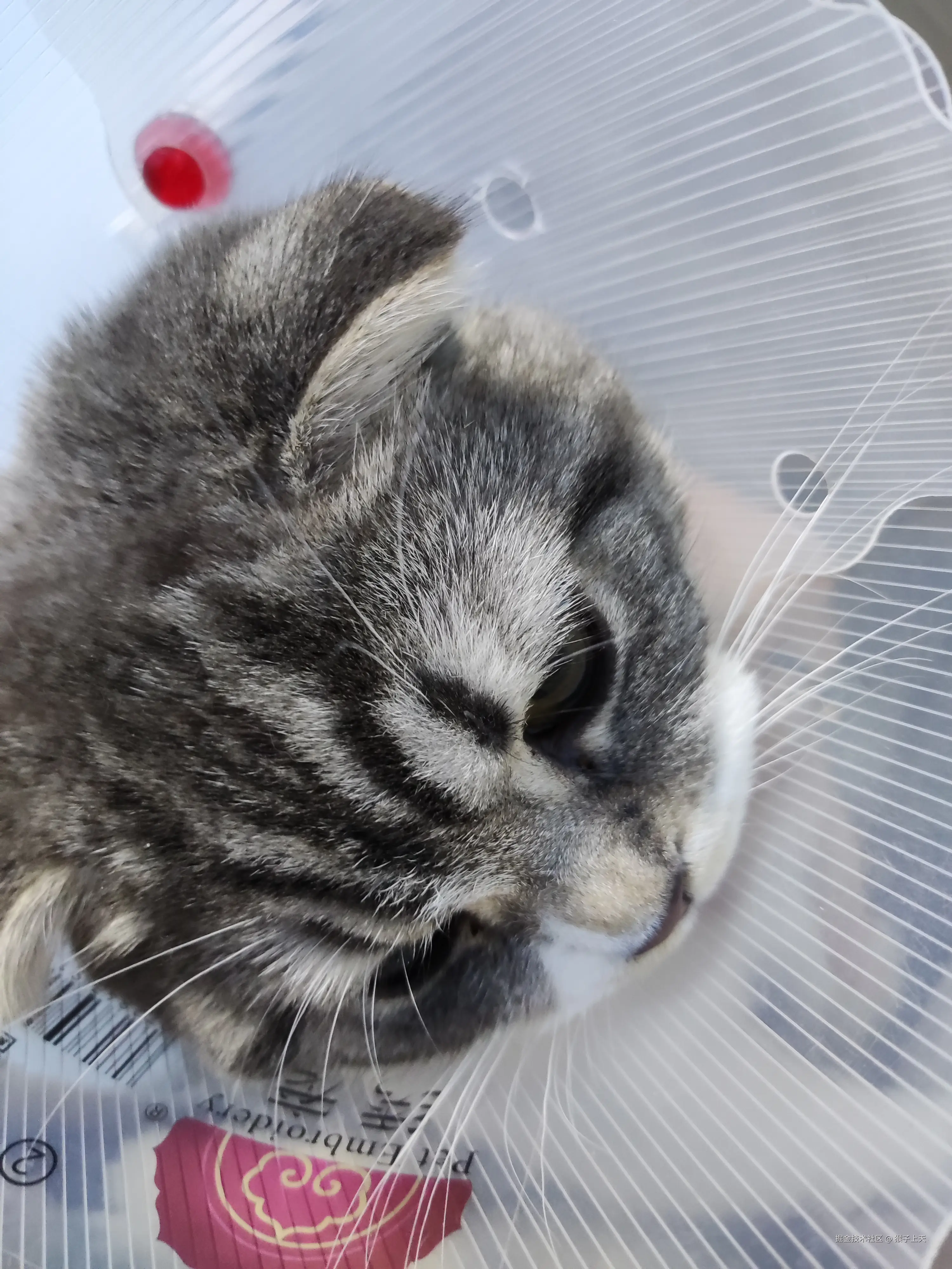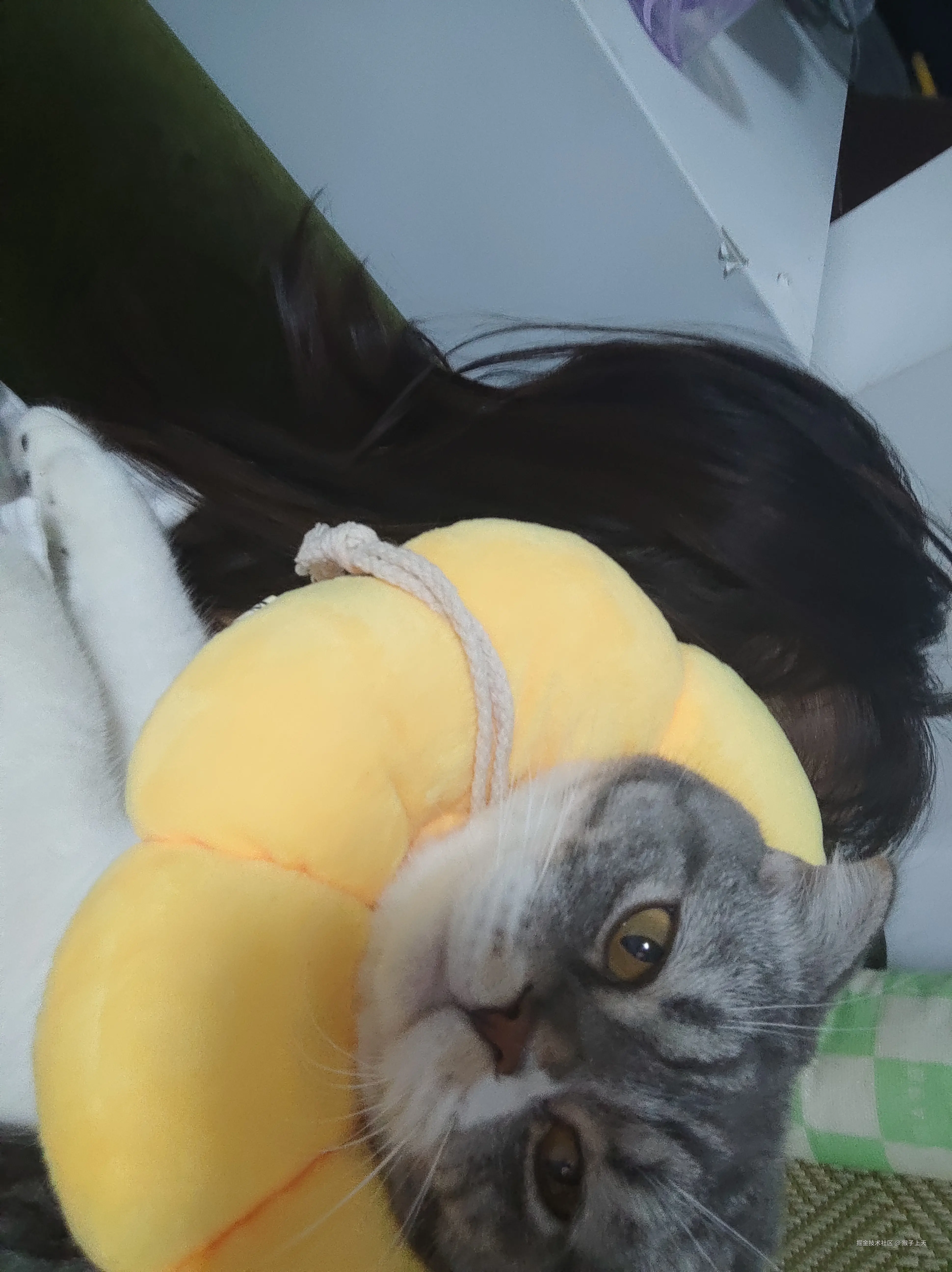 我妈说给我买了个新的脖套防止驱虫后我舔毛,笑死,我又不傻,不会乱舔,这脖套迟早给它卸了